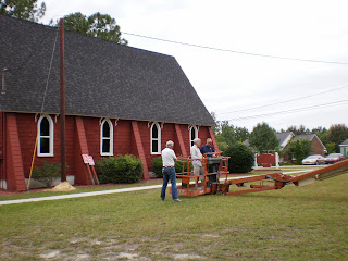 We completed this removal just this week. These bees chose to set up their home 35' up in the top of a pretty 100 year old Baptist church, If I was a honey bee, I also would have found this location attractive.